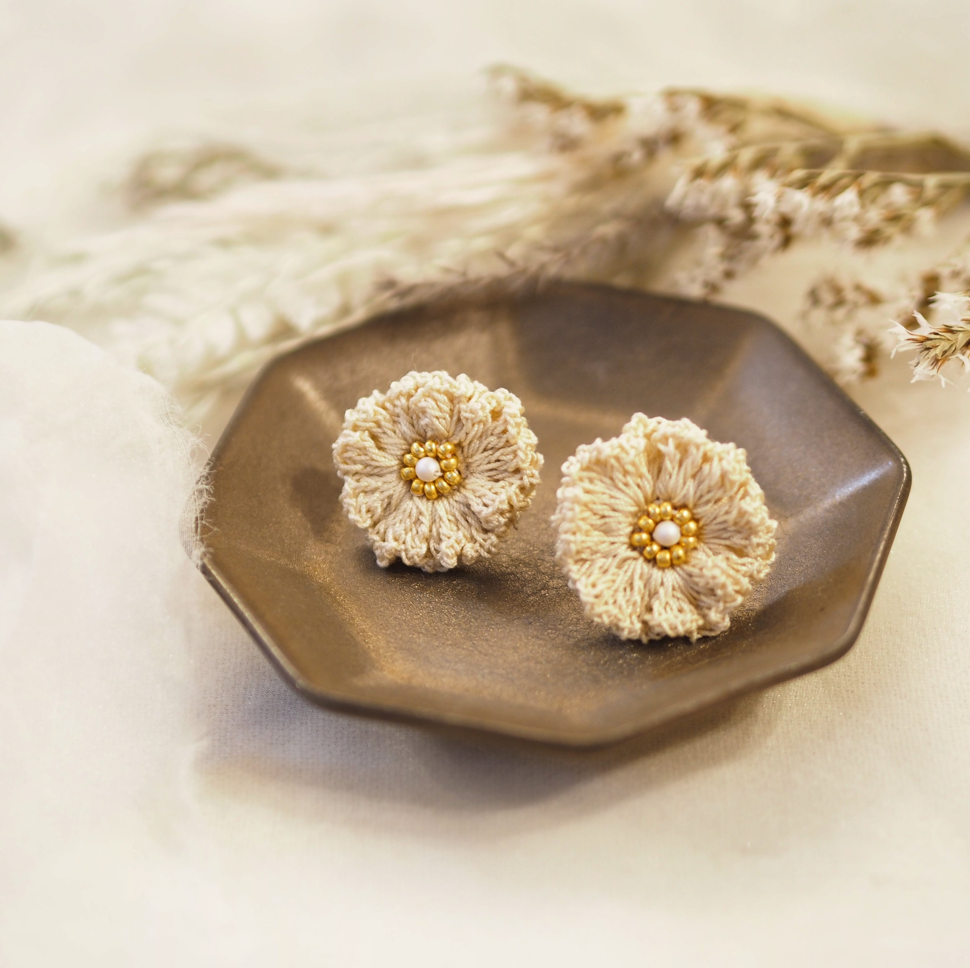 デイジーモチーフのかぎ針編みのキッズポシェット おしゃれでかわいらしいデザインのキッズポシェットは、お子様のお出かけを楽しくするアイテムです◎ 内布もつけてあるため小物入れても落ちる心配はありません おやつやおもちゃと一緒にかわいくお出かけしませんか ■ カラー/サイズ ・カラー: ホワイト/ベージュ ・サイズ 外寸:約13cm×約16cm 内寸:約12cm×約12cm ショルダー紐は調整可能です。 ■ 素材 ・コットン100% ■ お手入れ/取り扱い注意事項 ・手洗いを推奨。漂白剤は使用しないでください。 ・直射日光を避けて乾燥させてください。 ■ 発送・注文に関する情報や注意事項 ・ご注文から発送まで通常3〜5日かかります。 ・発送は平日のみです。土・日・祝はお休みいただいております。 ■ その他の情報や注意事項 ・手作りのため、力の入り具合や編み方の違いによる個体差が生じることがあります。 ・一つ一つ丁寧に編み上げていますが、既製品のような完璧さや強度、耐久性はありません。 ・個体差をハンドメイドの醍醐味としてお楽しみいただけると嬉しいです。 ・手編み素材のため、濡れた状態やひっかかりにはご注意ください。 ・なるべく自然光で撮影しておりますが、ご覧になる環境や端末によって色味や質感が異なる場合がございますので、ご了承ください。