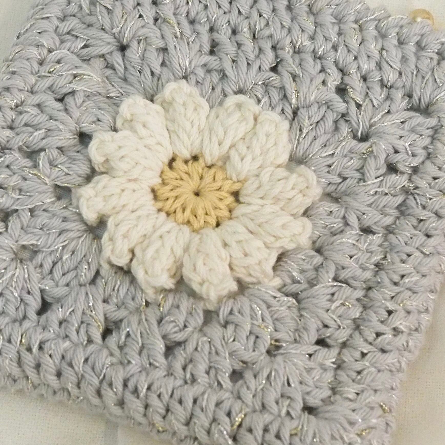 デイジーモチーフのカラビナポーチ(ラメシルバーグレー)