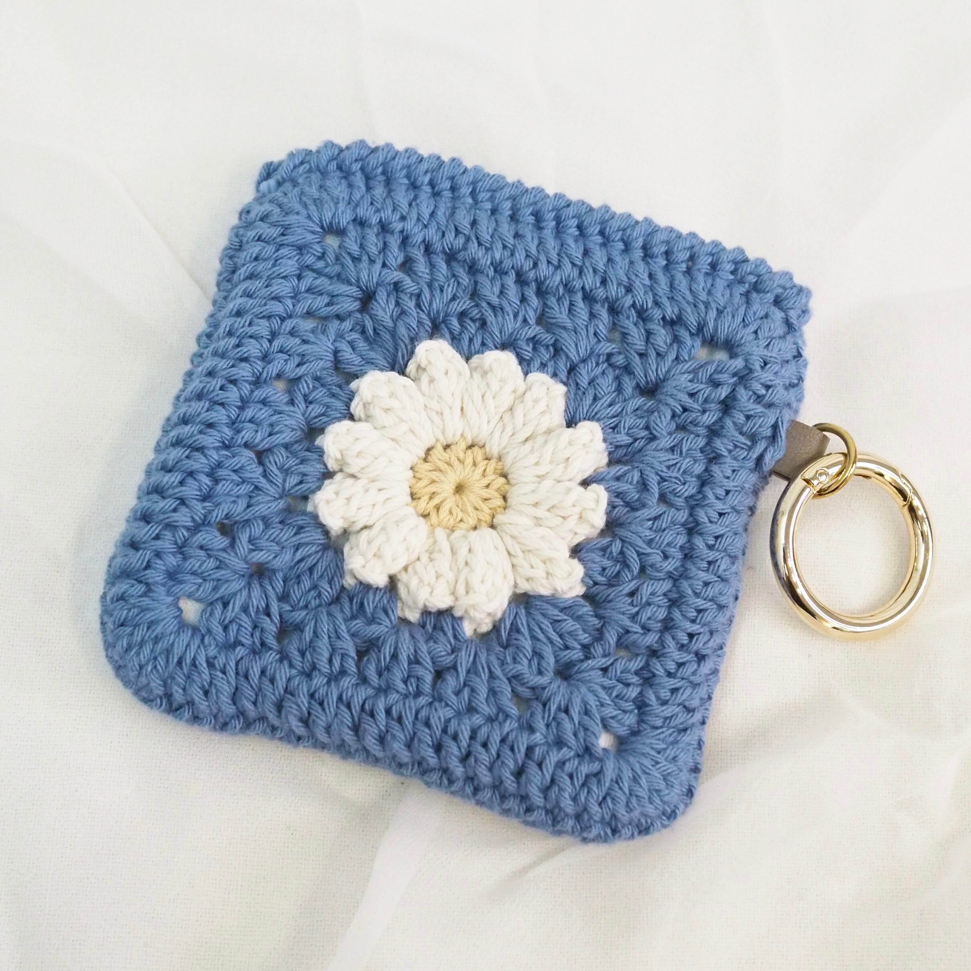 デイジーモチーフのカラビナポーチ(ブルーB)