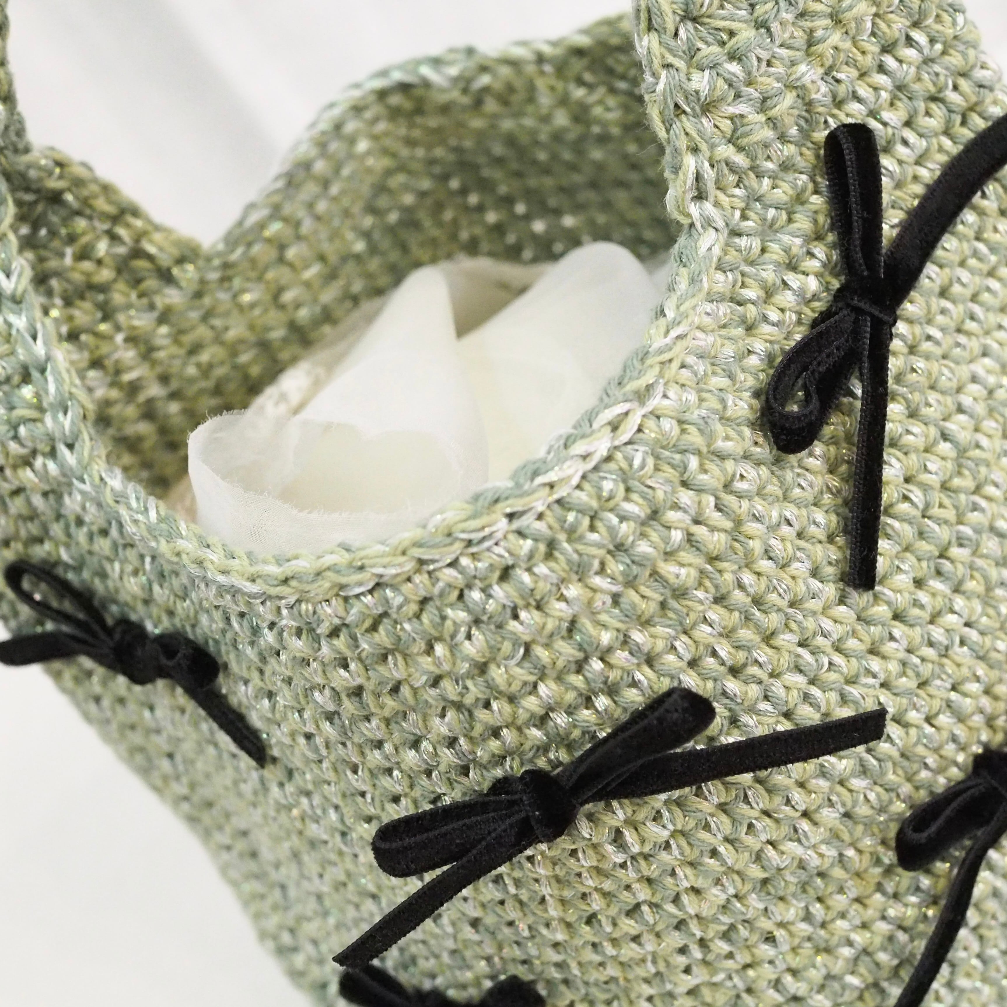 ・繊細な手編み作品なので力の入り具合など個体差やサイズに若干の左右差など生じることございます