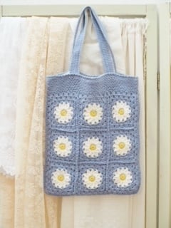 デイジーモチーフのかぎ針編みトートバッグ