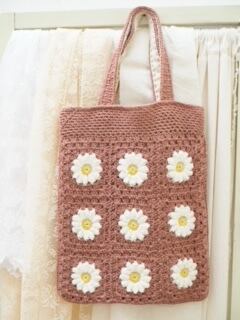 デイジーモチーフのかぎ針編みトートバッグ