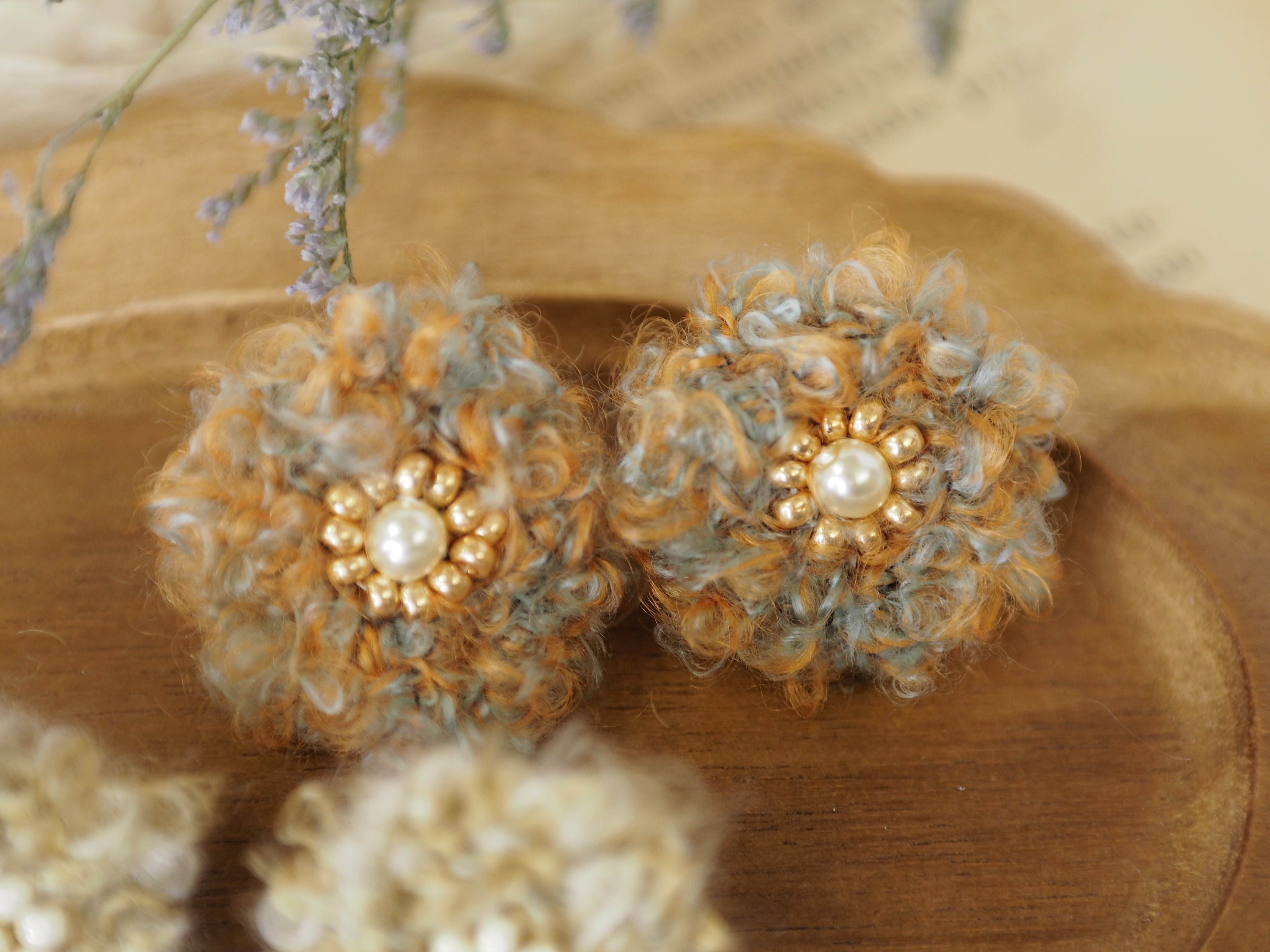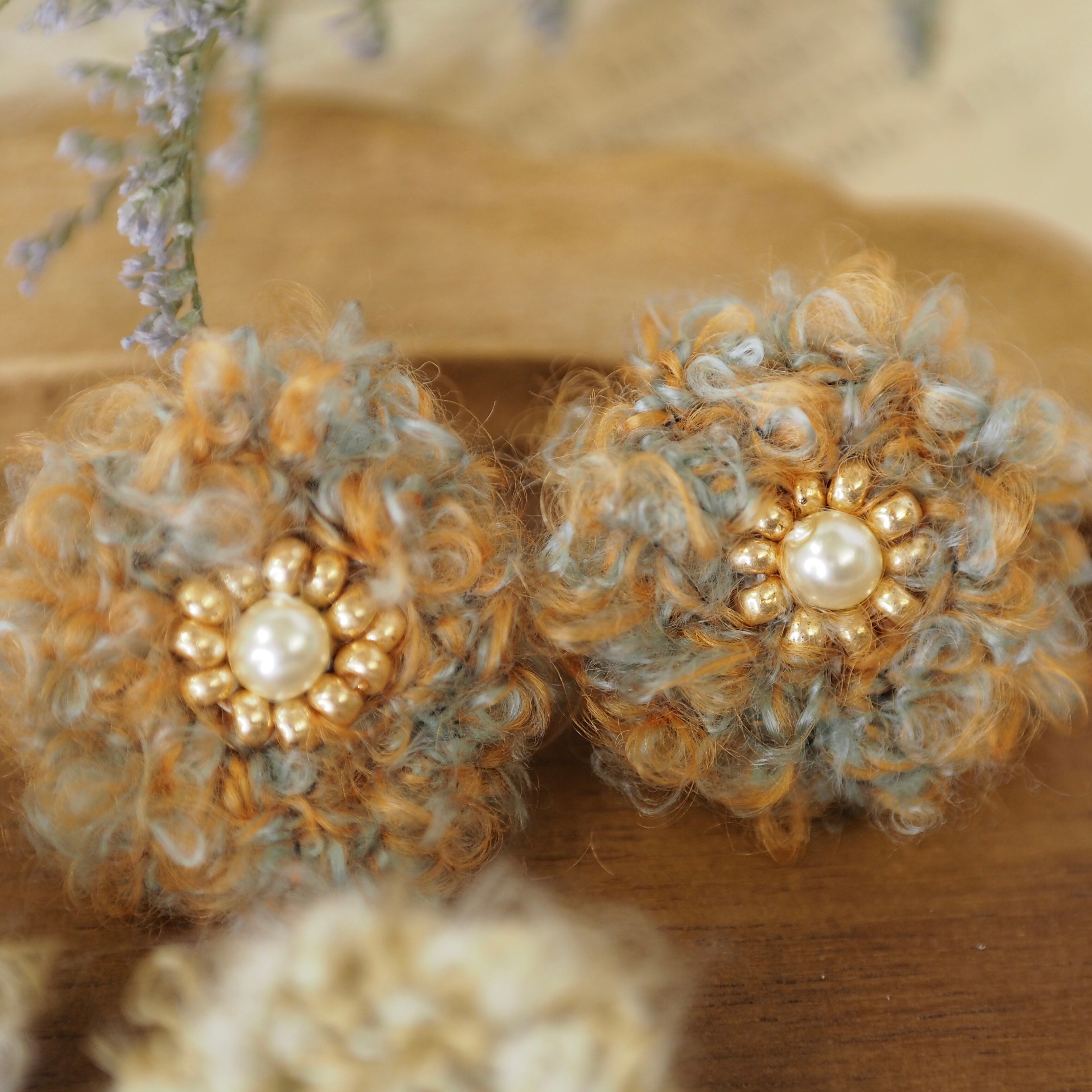ふわふわレトロボタン風の耳飾り